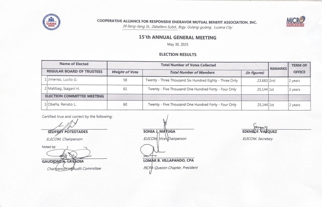 The representatives/members will read and review the minutes of the 13th Annual General Meeting held last May 26, 2023 at St. Jude Cooperative Hotel and Event Center. The said minutes is posted on CARE MBA website on the same date.